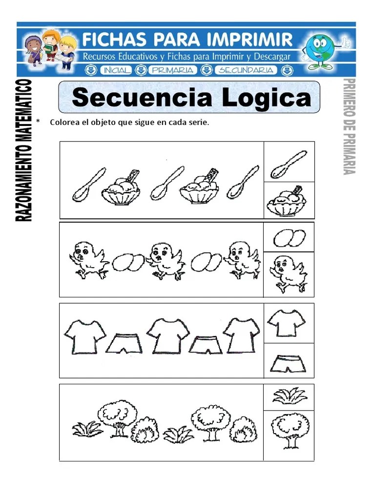 Actividades de percepción visual · juegos educativos para niños. Estos juegos nivel 2 pueden disfrutarlos . Las series son secuencias de objetos que están ordenadas siguiendo un criterio lógico. Ver más ideas sobre seriacion, actividades, actividades de otoño para niños. Se presenta una serie de juegos que promueven el reconocimiento de patrones y razonamiento lógico. Utiliza los imanes de nevera que tienes en casa para crear con ellos secuencias lógicas mediante las que los niños tienen que adivinar cuál es la ficha que . Ejercicios y actividades online de secuencias lógicas. En estos ejercicios tarbajamos la lógica mediante formas, colores (series lógicas .